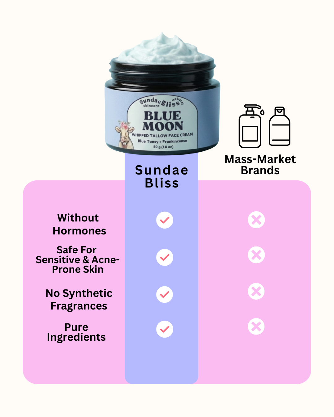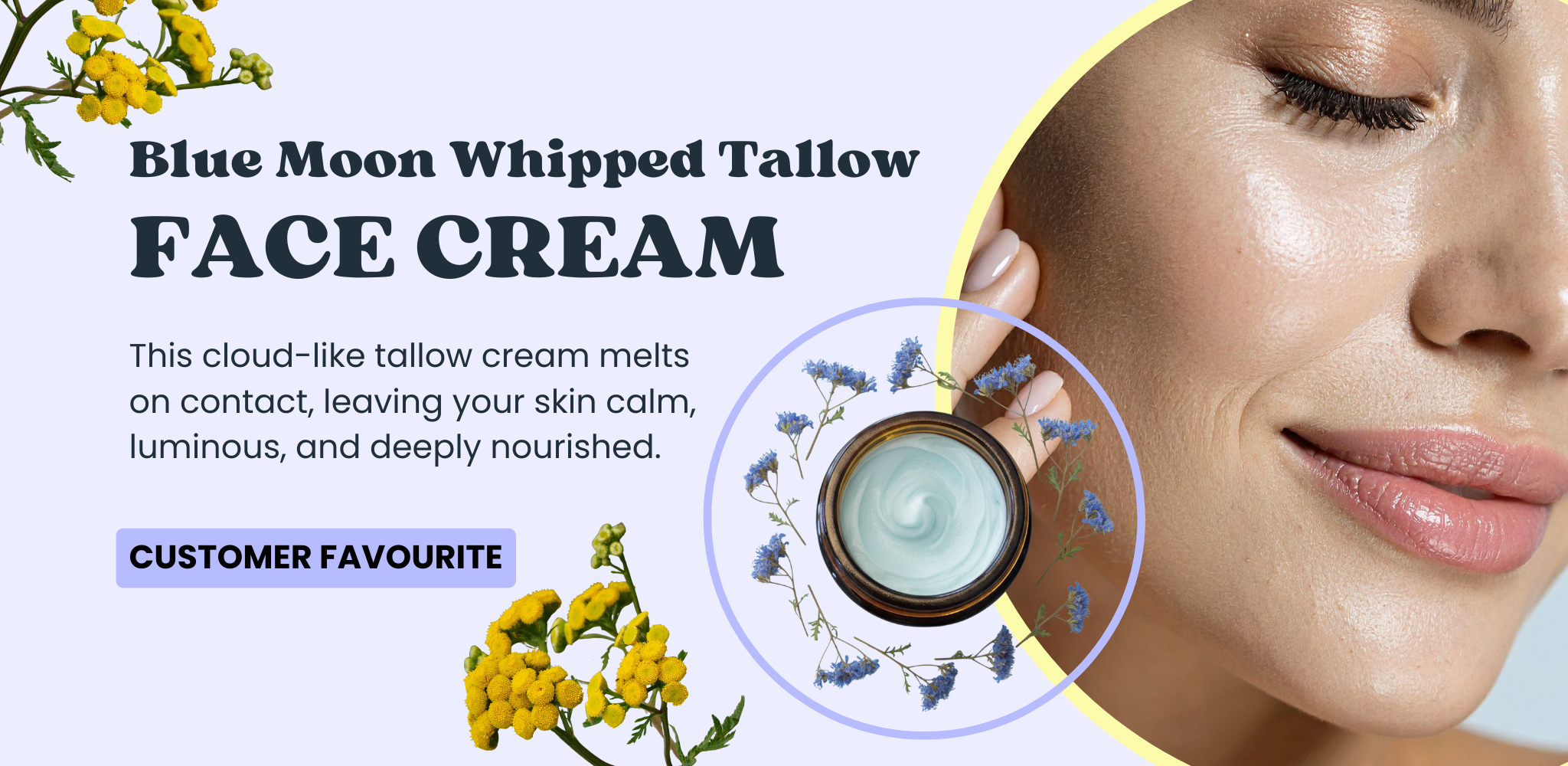 Tallow is rendered fat from grass-fed cows that closely mimics the natural oils (sebum) in our skin. It’s rich in fat-soluble vitamins A, D, E, and K — making it deeply nourishing, healing, and perfect for dry or sensitive skin.