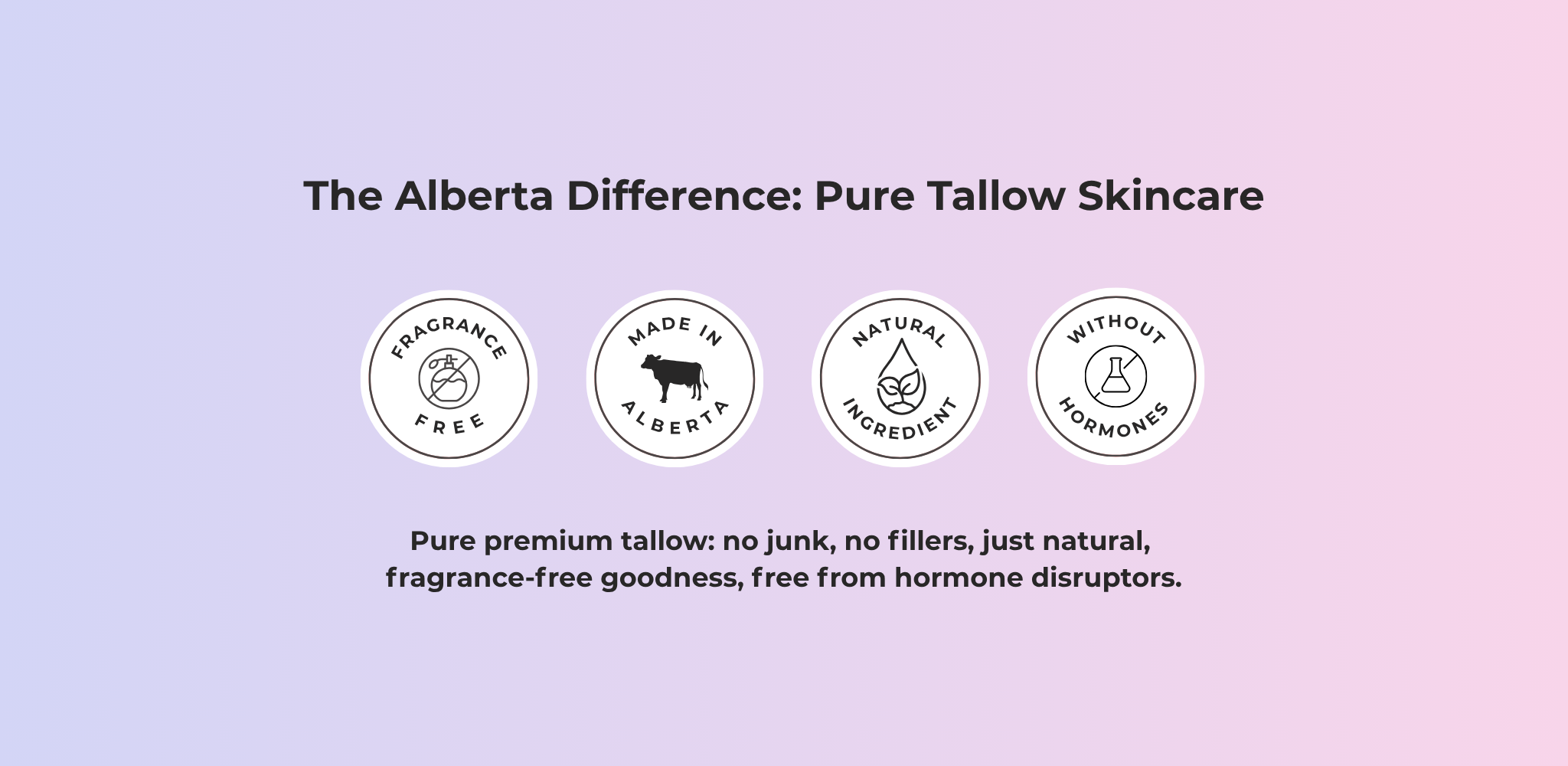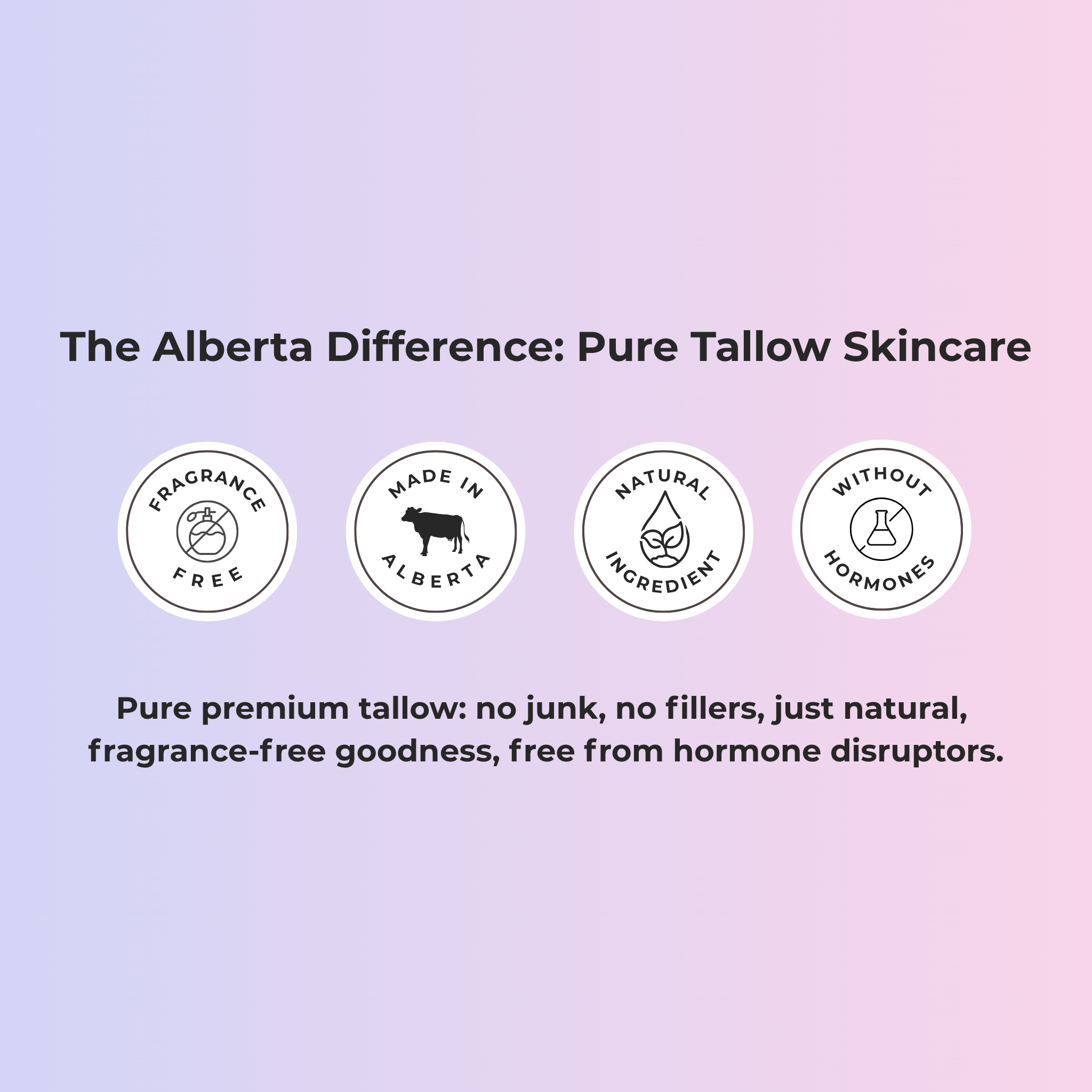 We source our tallow from sustainable, grass-fed and finished farms right here in Alberta. These small-scale farmers prioritize ethical practices, animal welfare, and regenerative land care — so you can feel good about what you’re putting on your skin and where it comes from.